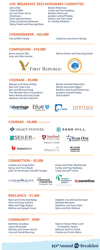 Thank you to the CHC Breakfast Honorary Committee, Sponsors, and individual supporters for making this day possible, and our deepest gratitude to a generous anonymous donor who offered to match every gift made to CHC through the end of May.