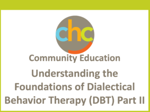 CHC also offers DBT-informed treatment, which incorporates some components and principles of DBT but does not include all of the features necessary for a comprehensive DBT program. Learn more about the difference between comprehensive DBT and DBT-informed treatment.